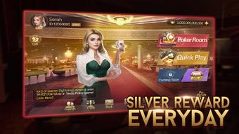 توفر اللعبة مجموعة متنوعة من الميزات، بما في ذلك البطولات والبوكر الاجتماعي ونظام المشاركة. يسمح لك نظام الجوائز بالتحقق من إنجازاتك ومعالمك الهامة، ويقودك نظام التصنيف من مبتدئ إلى محترف. تقدم اللعبة أيضًا مكافآت يومية وأحداث محدودة الوقت ومكافأة ترحيبية قدرها 30,000 فضة عند التنزيل. يتم توجيه هذا التطبيق للاستخدام من قبل الأشخاص الذين تزيد أعمارهم عن 18 عامًا وهو لأغراض التسلية فقط. يتضمن هذا التطبيق عمليات شراء داخل التطبيق، ولا يعني الممارسة أو النجاح في القمار والألعاب الاجتماعية النجاح المستقبلي في القمار بالمال الحقيقي.